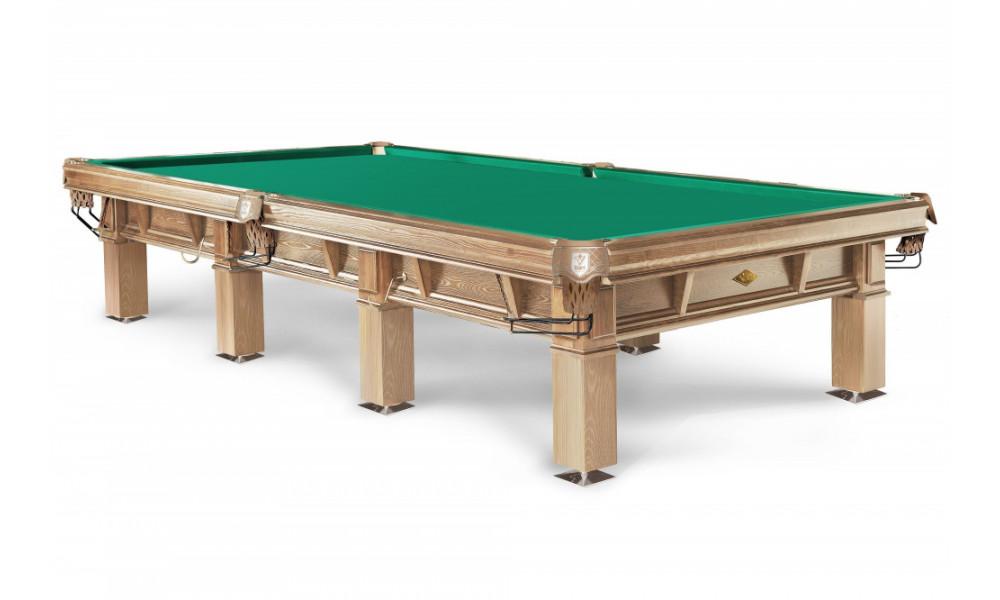 Модель также усовершенствована усиленным крепежом, в изготовлении используется исключительно массив дерева. На столе такого уровня используются только латунные скобы на лузы и латунные чашки опор, амортизаторы Start Super Pro, рекомендованные ФБСР для проведения чемпионатов. Стол выпускается только в размере 12 футов. Этот бильярд изготовлен из эксклюзивных материалов, с высочайшим уровнем качества каждого элемента, что по достоинству оценят профессионалы и суперпрофессионалы бильярдной игры!